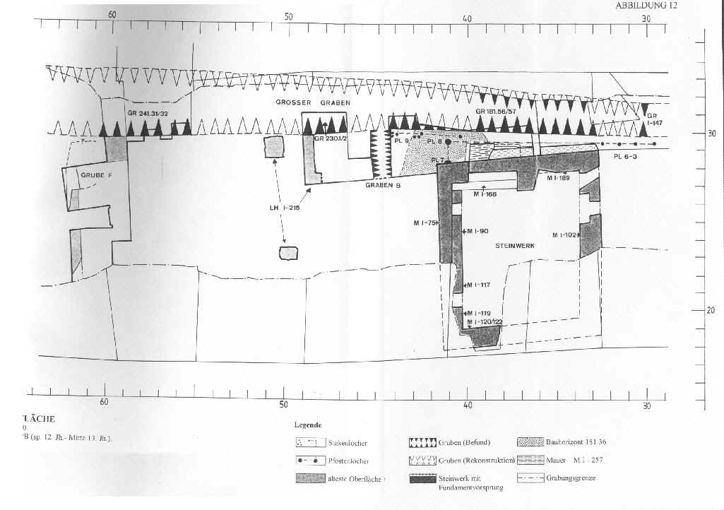Abb. 12. Südfläche. Hor. A/B (sp. 12. Jh./Mitte 13. Jh.) Für eine vergrößerte Ansicht auf die Abbildung klicken.