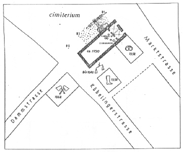 2) Rekonstruktionsvorschlag für die Ausdehnung des Urgrundstückes um 1200 |