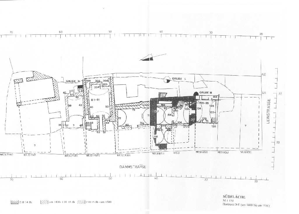 Abb. 19: Südfläche. Horizont D-E (um 1400 bis um 1500) Für eine vergrößerte Ansicht auf die Abbildung klicken.