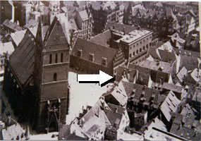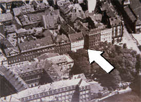 Abb. 84/1: Ausschnitt Luftbild der Deutschen Wehrmacht. Pfeil: Mündung der Dammstraße in die Leinstraße. |