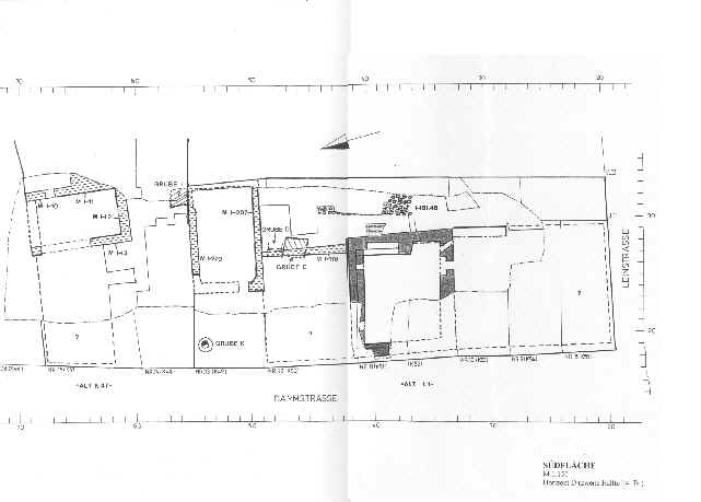 Abb. 18: Südfläche. Horizont D (zweite Hälfte 14. Jhd.) Für eine vergrößerte Ansicht auf die Abbildung klicken.